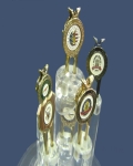 果嶺維修器(又名果嶺園丁、果嶺叉)打高爾夫球,球打上果嶺時,果嶺凹陷即須以此維修器修補,產品正面配備可換式標誌,頂部寶塔型設計,中間缺口可夾香菸,整體往後 360 ° 延伸,以高爾夫球型完結當夾具,可夾在皮帶或褲袋上,底部(雙腳)前後有脊,除美觀,又有補強作用。整支產品全部用青銅鍛造而成,屬實用型,歷經 20 年不衰。